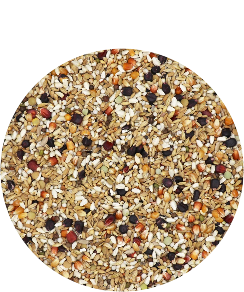 Die ideale Diätmischung mit vier verschiedenen Maissorten: Mischung aus schwarzem, bordeaux, rotem und kleinem Cribs-Mais